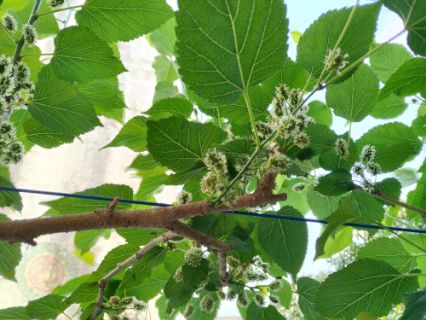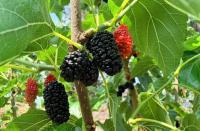 近日在广西贺州市八步区大宁镇大宁村入户时发现该村群众盆栽的桑椹生长良好。
