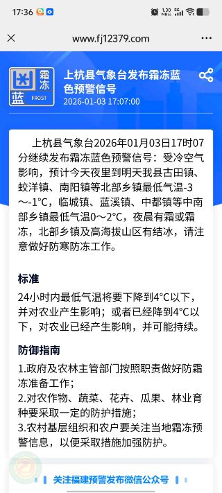 [苗情]预计未来一周(1月5日~11日),全省平均气温-14.7℃左右,比常年-15.1℃稍高。西部:-14.0℃左右;中部:-14.5℃左右;东部:-15.5℃左右。