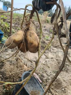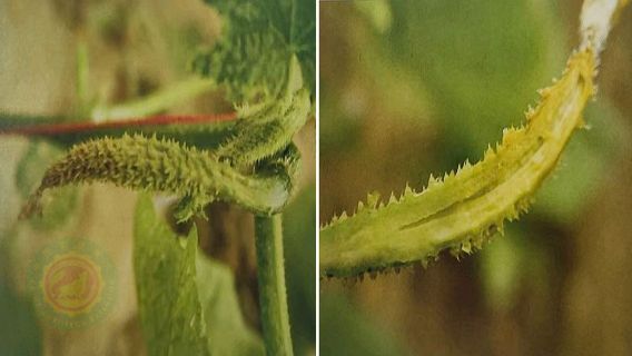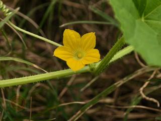 哈密瓜为一年生匍匐或攀援草本。 茎、枝及叶柄粗糙,有浅的沟纹和疣状凸起,幼时有稀疏的腺质短柔毛,后渐脱落