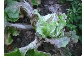 芹菜菌核病 属于真菌性病害。芹菜全生育期均可发病,危害芹菜叶柄和叶。受害部初期呈褐色水渍状,后变软腐烂,病部生白色菌丝,后期形成黑色鼠粪状菌核。低温、高湿、多雨、种植过密易于发病