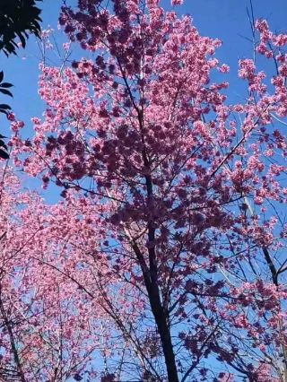 樱桃花为白色或粉色,花瓣小巧,通常呈五瓣,花蕊黄色,花朵密集地生长在枝头,形成伞状花序。花型优美,盛开时如同繁星点点,满树烂漫,极具观赏价值。