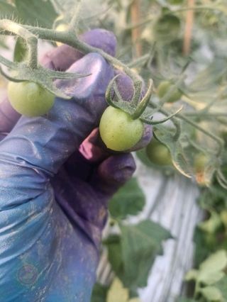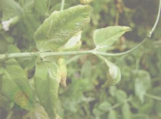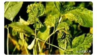 病毒病症状,植株矮化,叶片深绿,皱缩,蕨叶状或呈叶脉失绿变黄的花叶,果实有凹陷褐色条斑,是造成三落的主要原因。