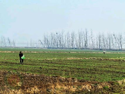 今天上午我们两个人又到程银龙家庭农场承包田里察看油菜苗情,他们家今年种了800多亩油菜。