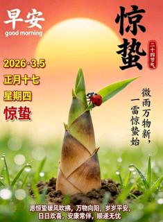 时至惊蛰,春雷始鸣、昆虫萌动,谚语“春雷惊百虫”形象而生动地描绘了万物生机盎然的景象。《淮南子·天文训》记载:“…(雨水)加十五日指甲,则雷惊蛰,音比林钟。”这是“惊蛰”一名在古代文献中最早的明确记载之一,唐代韦应物《观田家》一诗中“微雨众卉新,一雷惊蛰始”将“雷”和“惊蛰”节气名称直接联系在了一起。