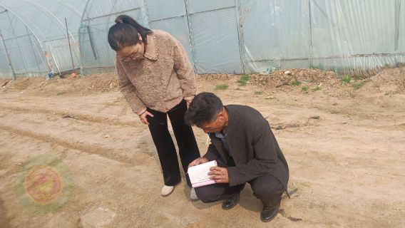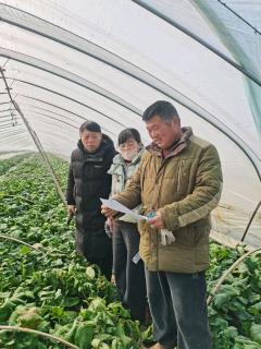 镇农产品质量安全监管站站长带领农产品质量安全监管站工作人员到吕士诚大棚检查大棚生产管理情况。