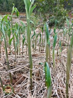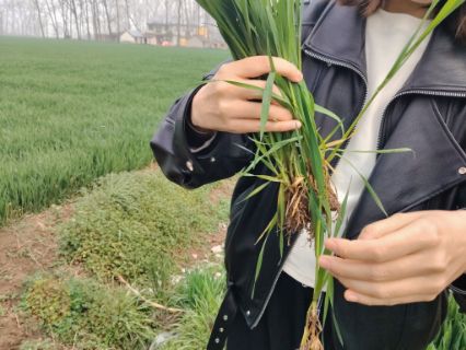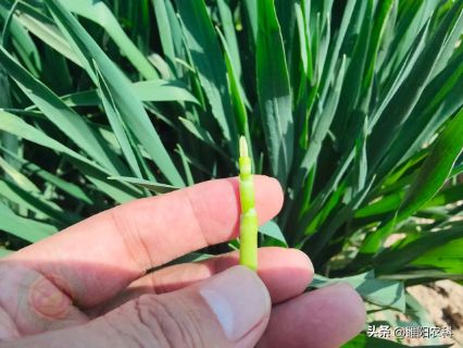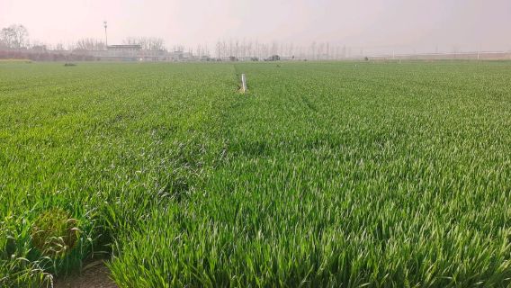 由于播期较迟,小麦拔节普遍较晚,3月24日小麦田间调查,在11月15日播种的小麦第一节间刚刚定长。