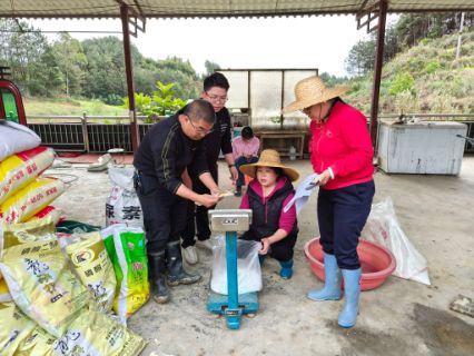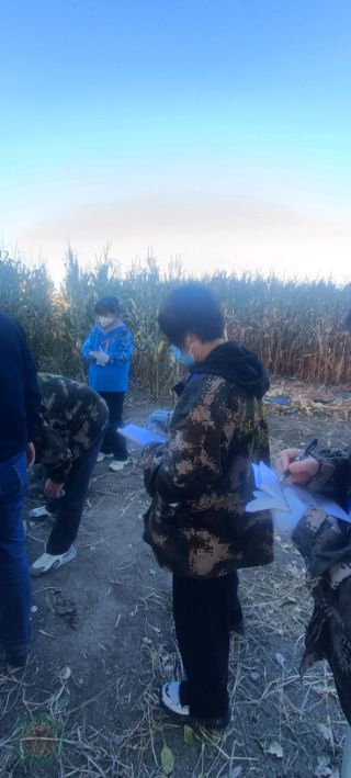 涞源县农业农村局技术人员到耕地监测点进行测产工作,数据记录在册。