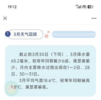 2026年3月31日,中雨,气温16~24℃,暴雨橙色预警、冰雹橙色预警、雷雨大风黄色预警。​春山苍苍,春水漾漾​;百草吐绿,燕归花开。