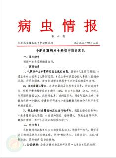 近期小麦蚜虫发生严重,趁晴天赶紧喷施农药防治。雨水较多,田间湿度大,气温高有利小麦赤霉病发生,也应抓紧预防